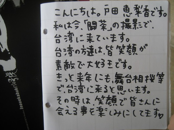 小梨留給台灣影迷的手稿 (15日版友提供)