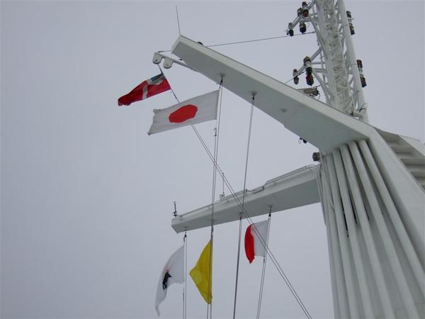 除了紅白旗之外,天秤星號也升起了一日丸日本國旗