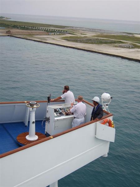 這時候船上的高級幹部們都站出來艦橋上頭,我們也看到副船長