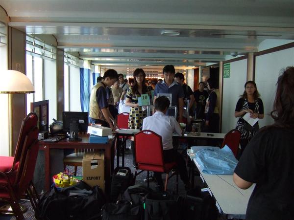 我們原本預計一聽到廣播就跑去排隊,沒想到剛剛好跟岸上套裝行程的鄉民們互衝!