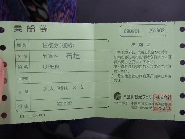 因為不知道「八重山」怎麼念,就拿船票給她看~她跟我們說待會一點十分會有一班回石垣島的船