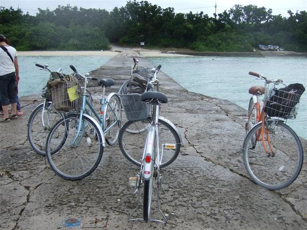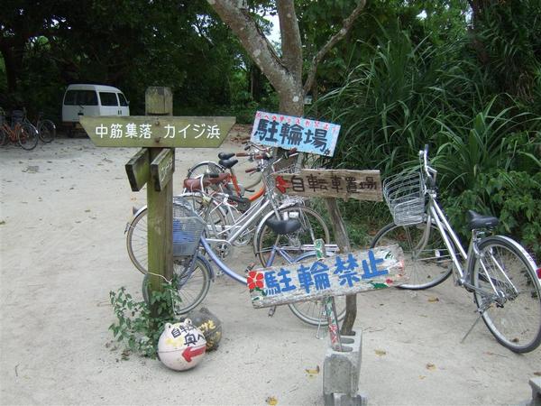 接著,我們沿著島的西側道路,前進到「コンドイbeach」,看見這一整排的單車