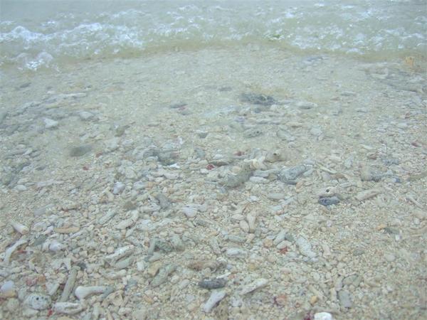 一整片由碎貝殼組成的白色沙灘,除了踩起來有點刺腳之外,沒啥好抱怨的!XD