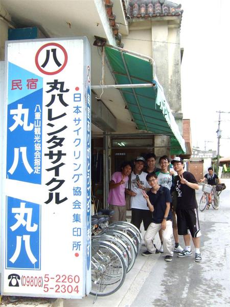 走向一旁的「丸八」租車的接駁車,剛好同船的麗星三人組也想租